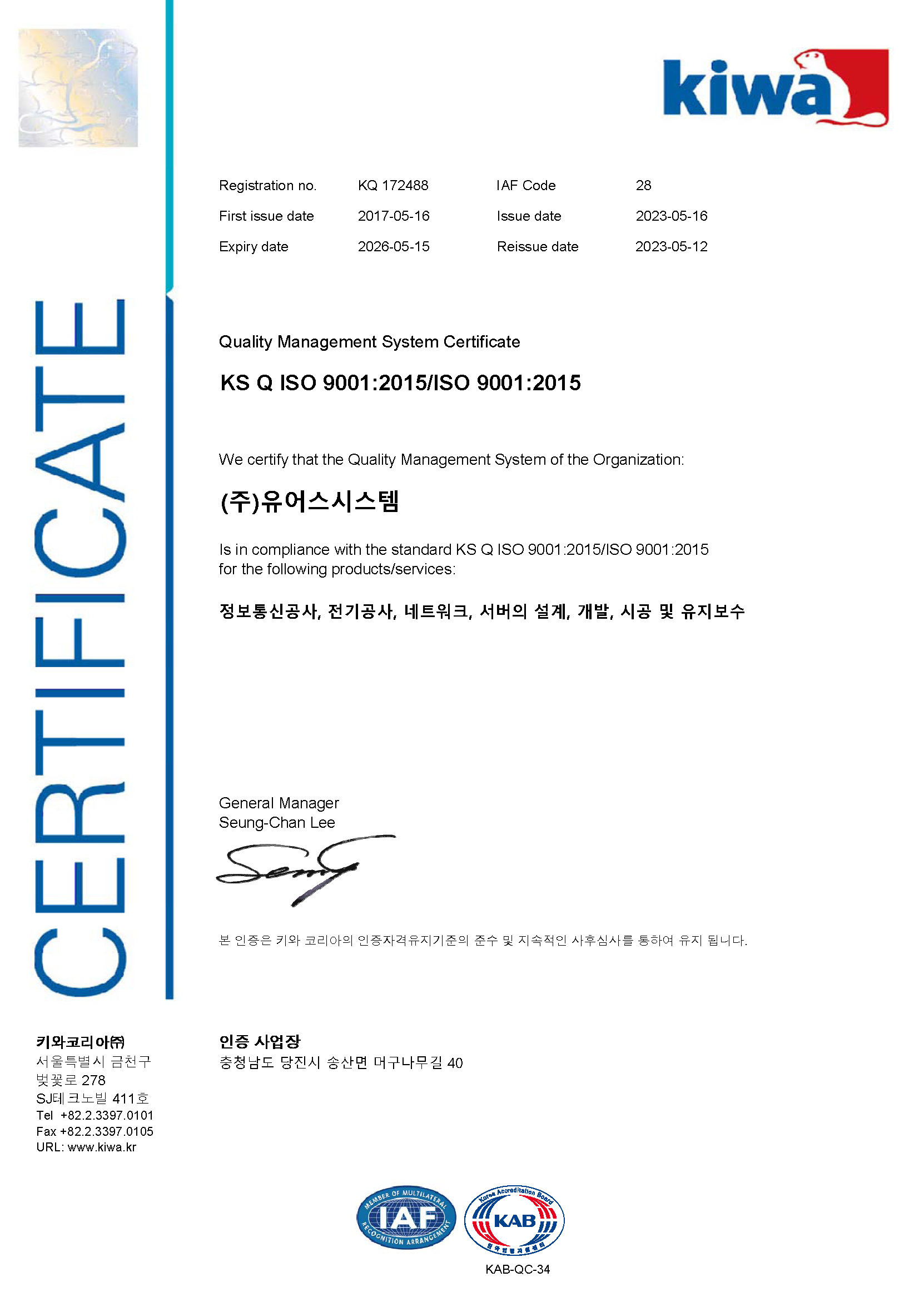 ISO9001:2015(QMS_품질경영시스템) 국제인증