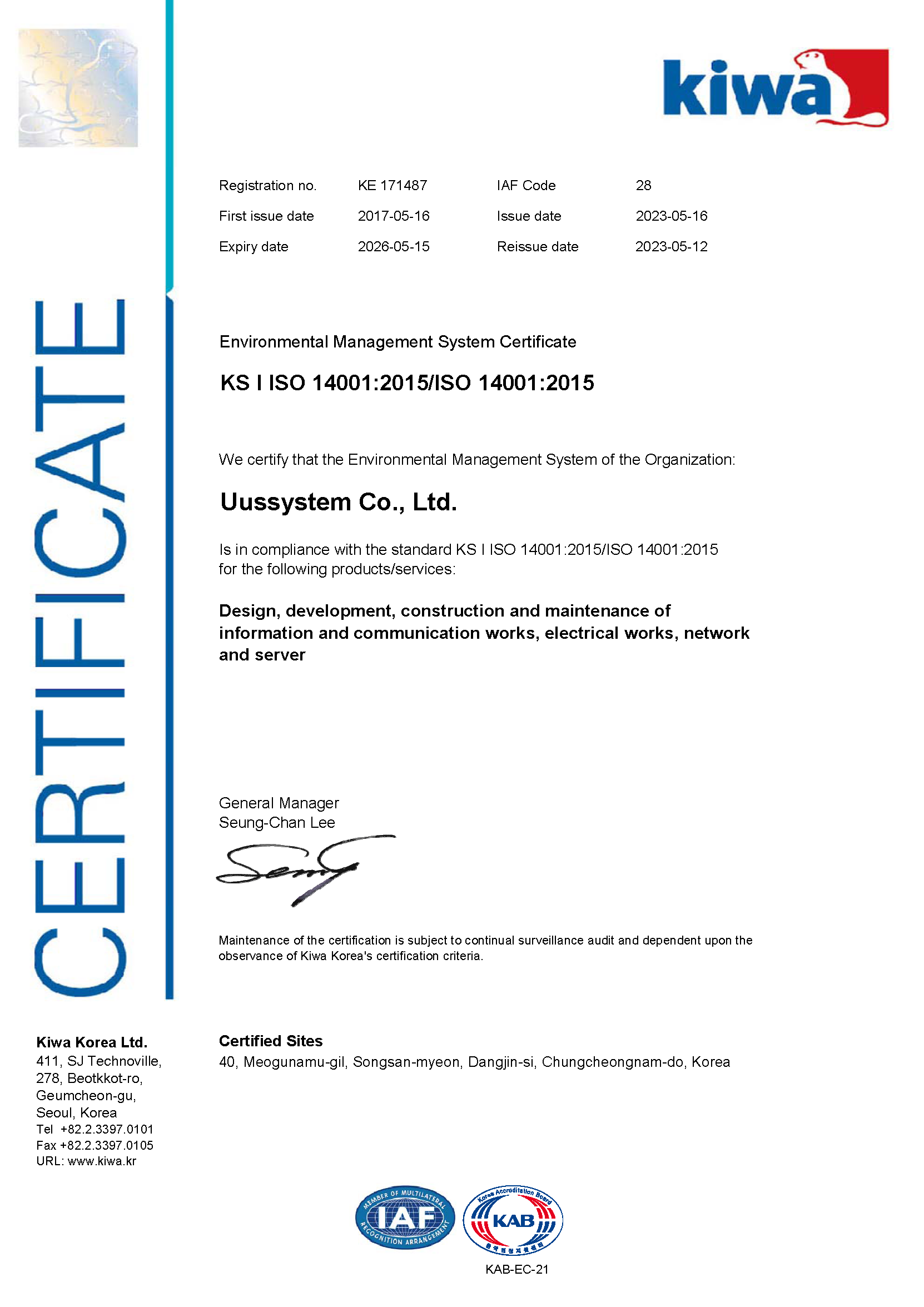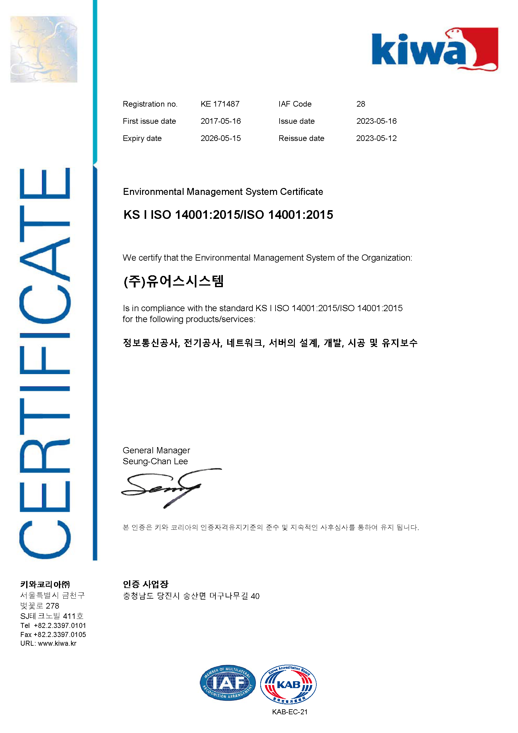 ISO14001:2015(EMS_환경경영시스템) 국제인증