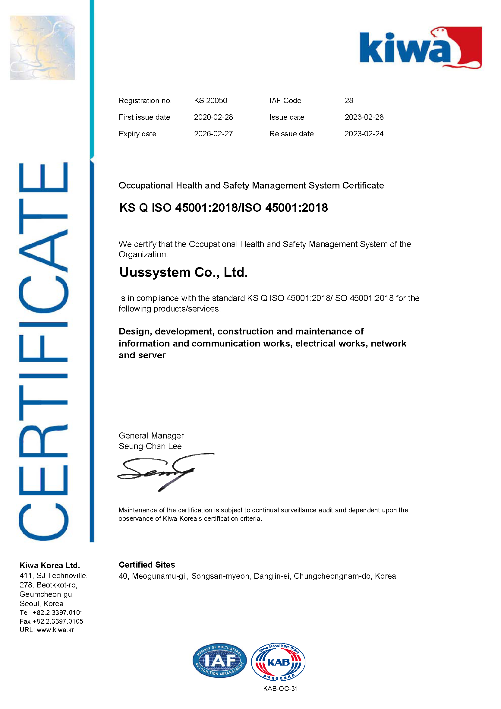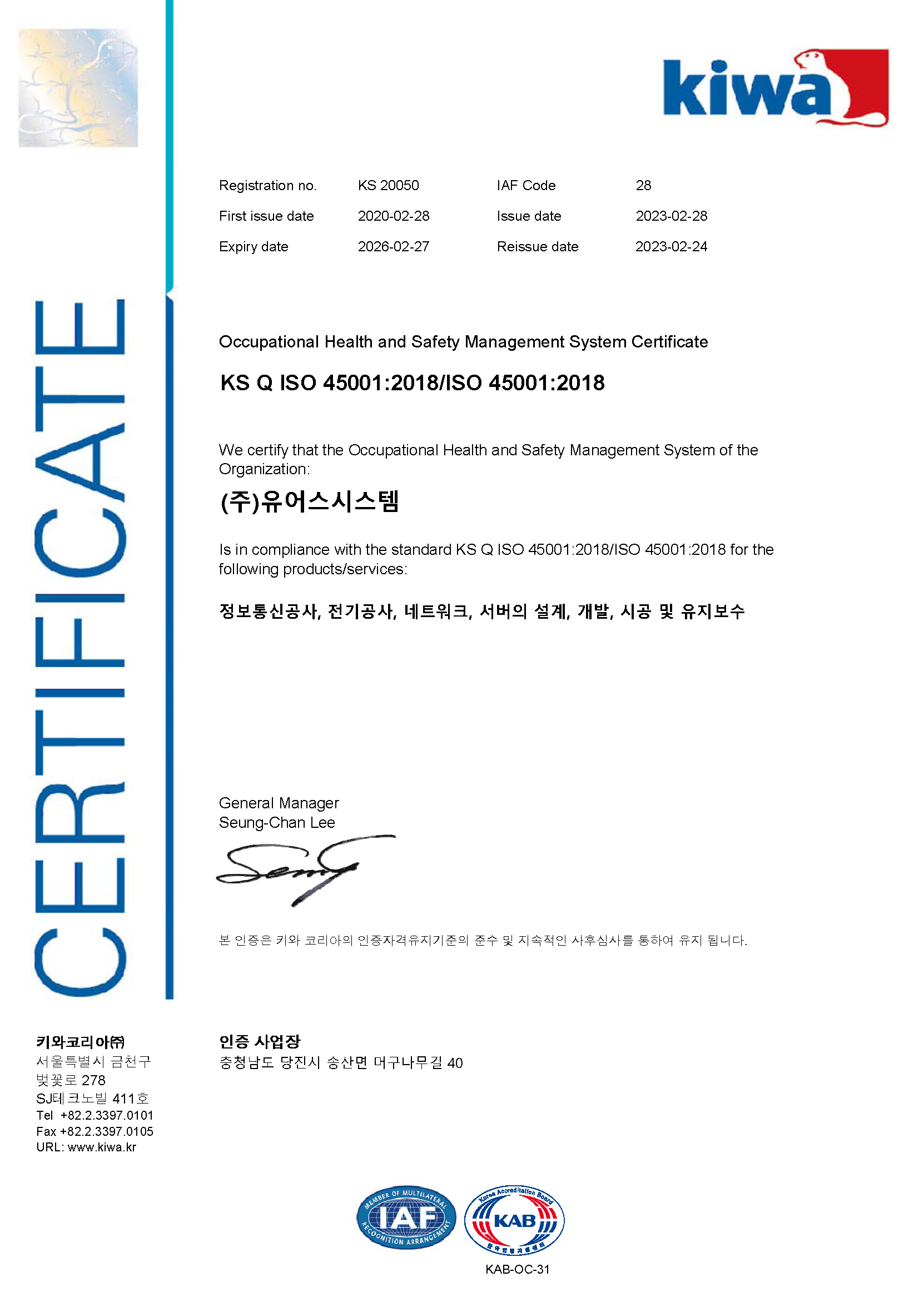 ISO45001:2015(SMS_안전경영시스템) 국제인증